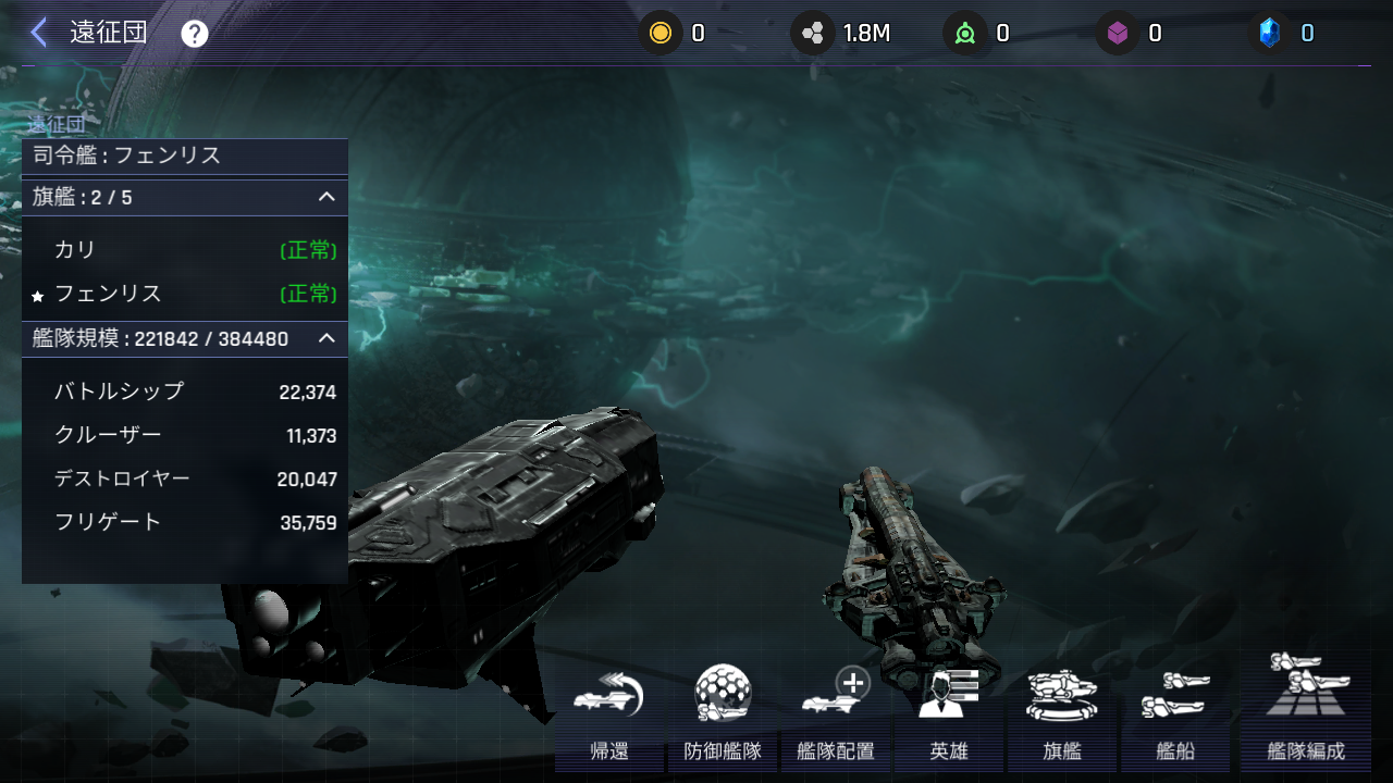 - 「キャピタル補給所」に位置していた英雄、旗艦、一般艦船はメンテナス後、全て遠征団に移動します。