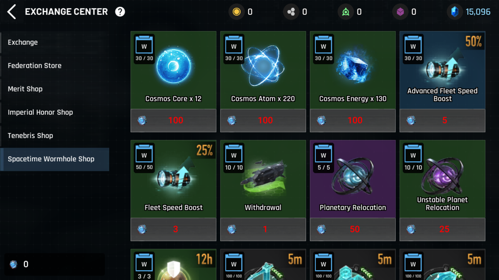 - 時空間ワームホール内で使用する加速、行動力、クリスタルについては、入場前にあらかじめご確認ください。